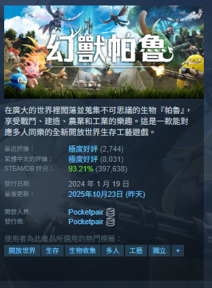 ⏬⏬STEAM版⏬⏬ Palworld / 幻獸帕魯標準版 方案1$430 方案2$330 🈹特價到11/04