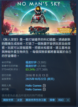 ⏬⏬STEAM版⏬⏬ No Man's Sky 無人深空標準版 方案1$410 方案2$330 🈹特價到11/03